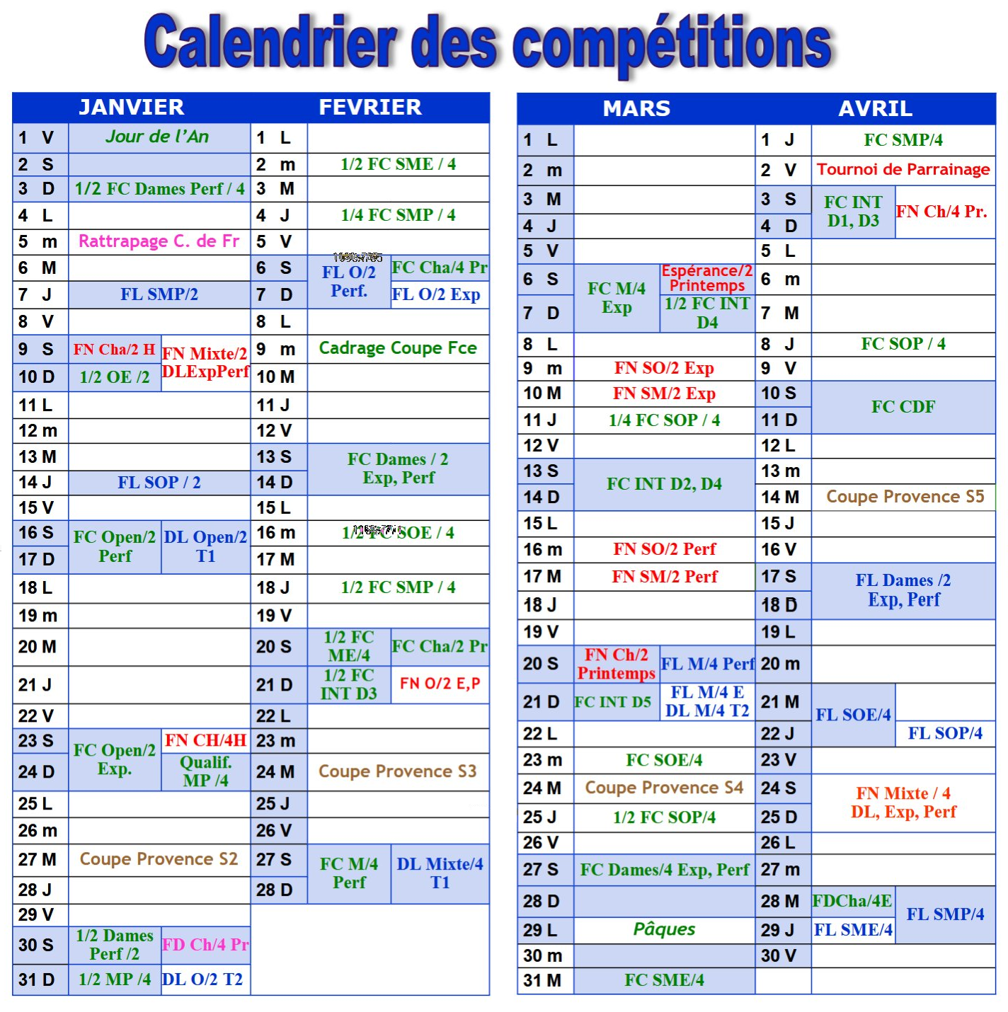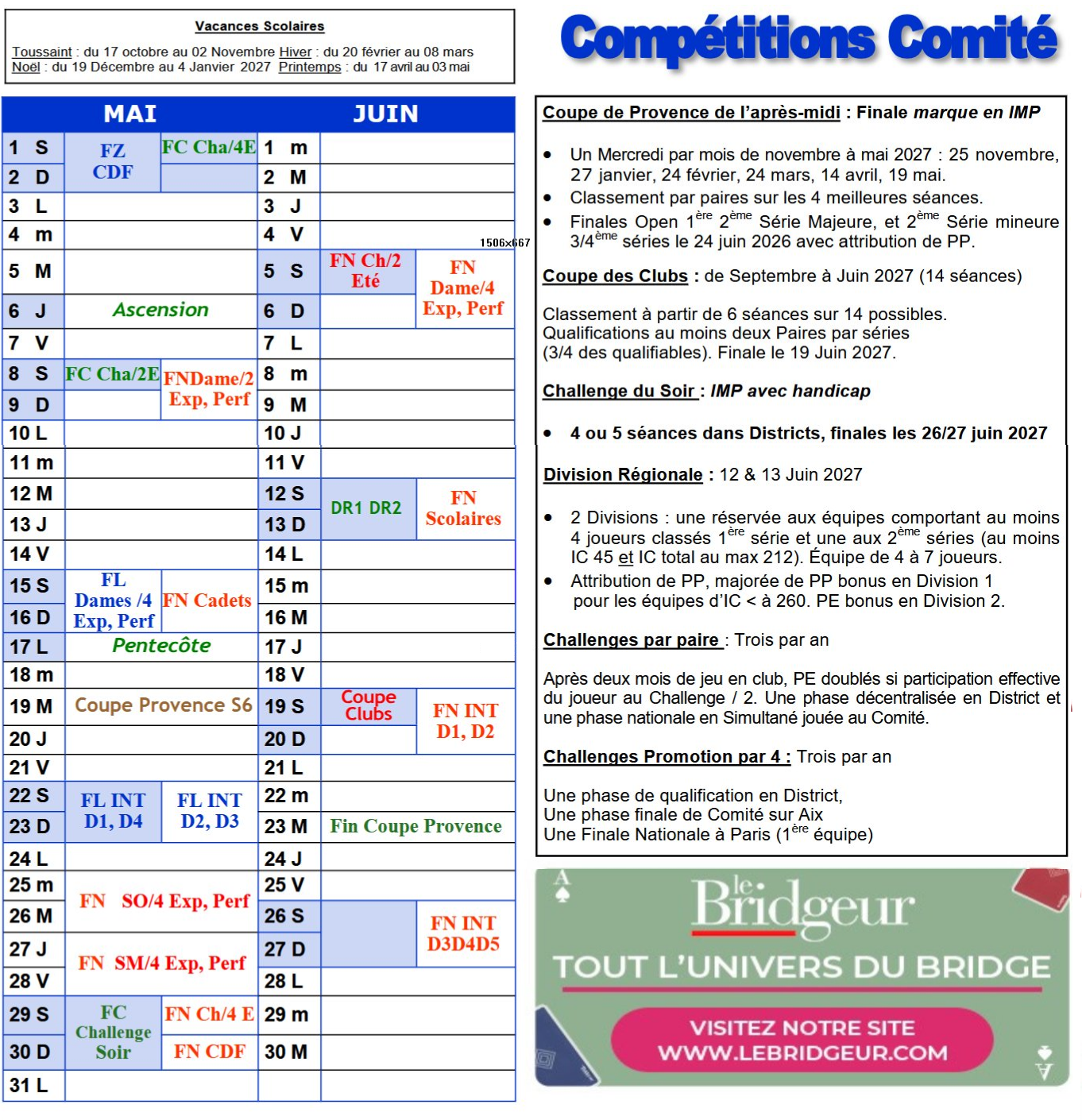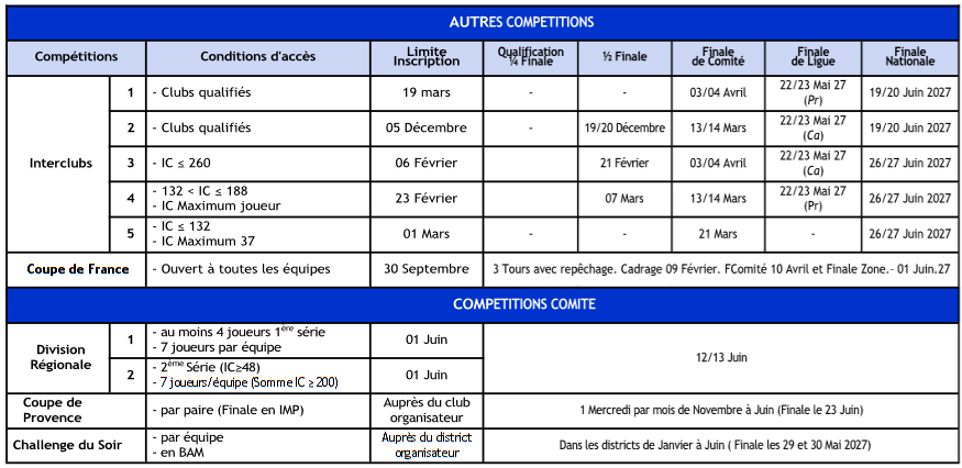 Calendrier Compétitions 2026-2027
